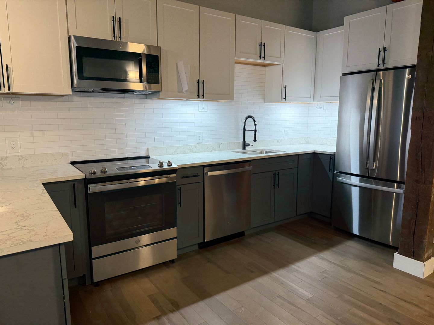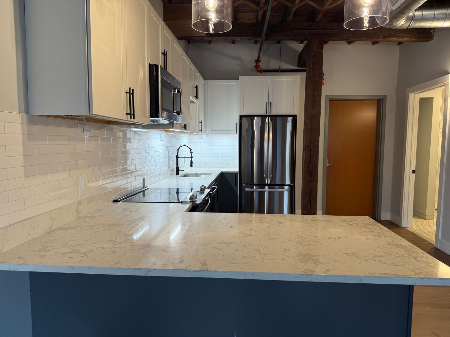 Welcome to our newly renovated luxury loft in the heart of Utica's historic downtown area. This one-bedroom, one-bathroom apartment features top-of-the-line stainless steel appliances including a refrigerator, microwave, and stove/oven. The granite countertops add a touch of elegance to the space, while the exposed brick walls give it a unique charm.