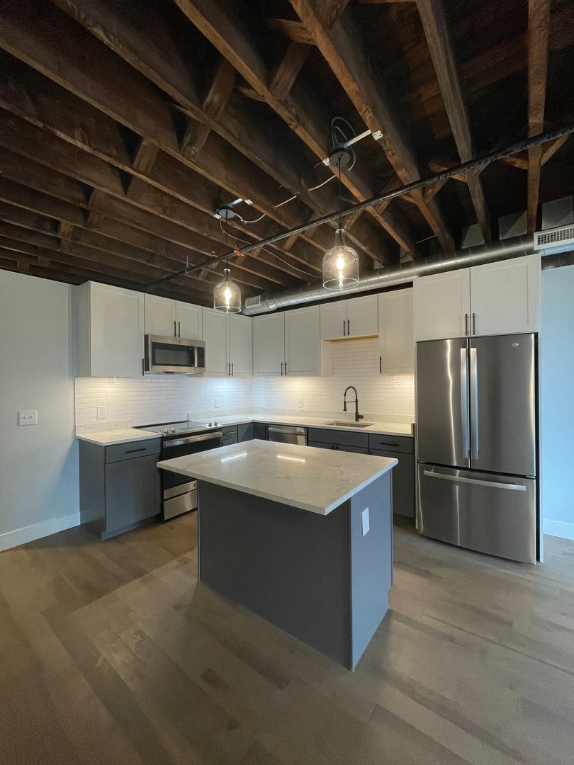 Welcome to our newly renovated luxury loft in the heart of Utica's historic downtown area. This one-bedroom, one-bathroom apartment features top-of-the-line stainless steel appliances including a refrigerator, microwave, and stove/oven. The granite countertops add a touch of elegance to the space, while the exposed brick walls give it a unique charm.